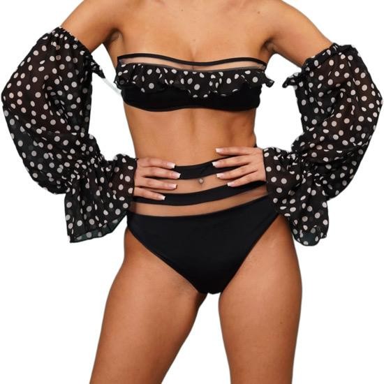 TRIANGOLO CON ROUCHES NERO CON POIS