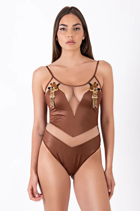 INTERO RICAMATO MARRONE