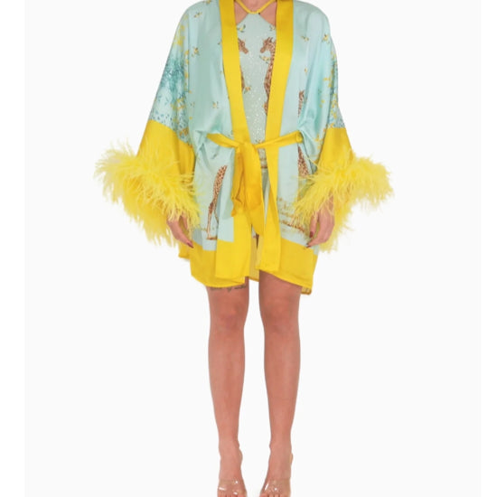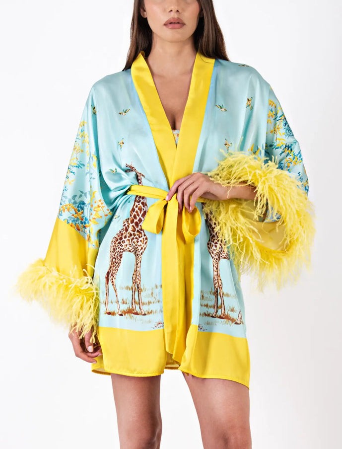 KIMONO CORTO CON PIUME FANTASIA GIRAFFA
