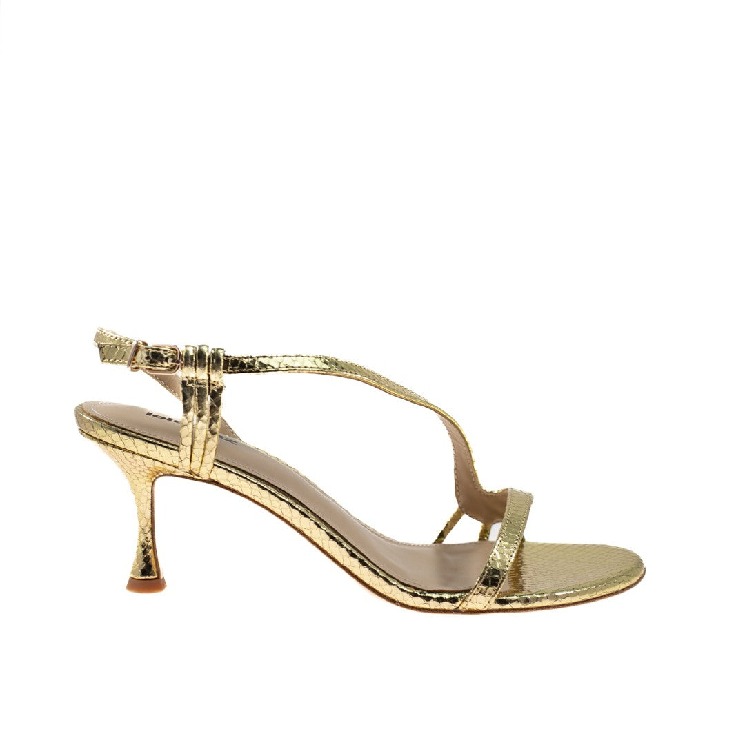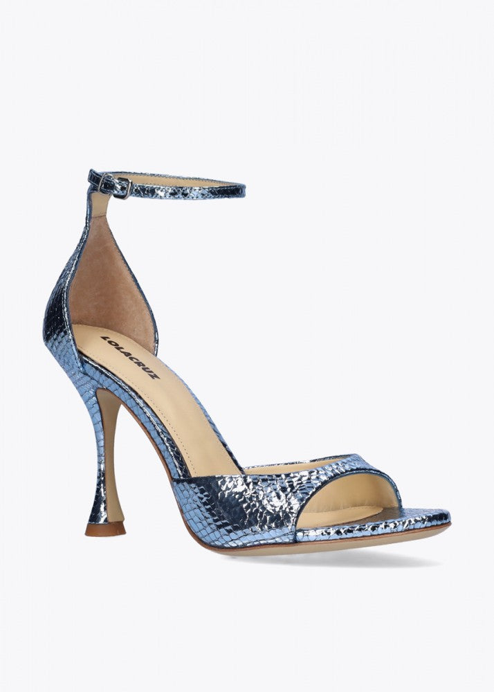 SANDALO IN PELLE LAMINATA PLATINO CON STRASS