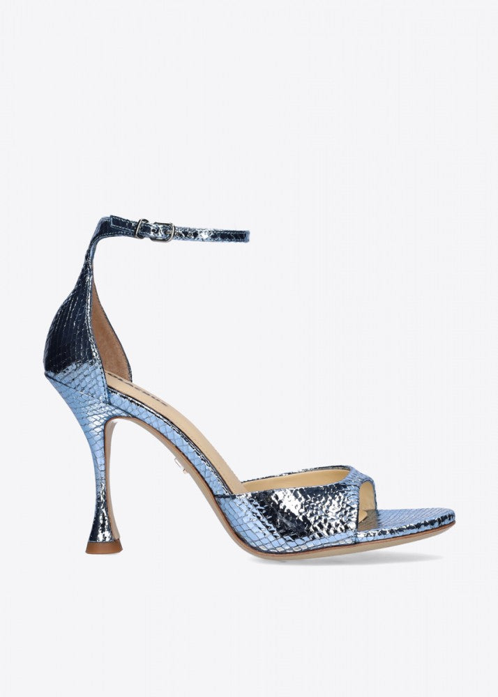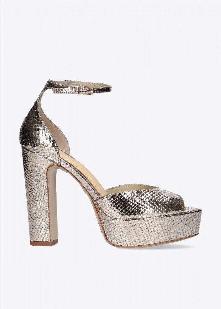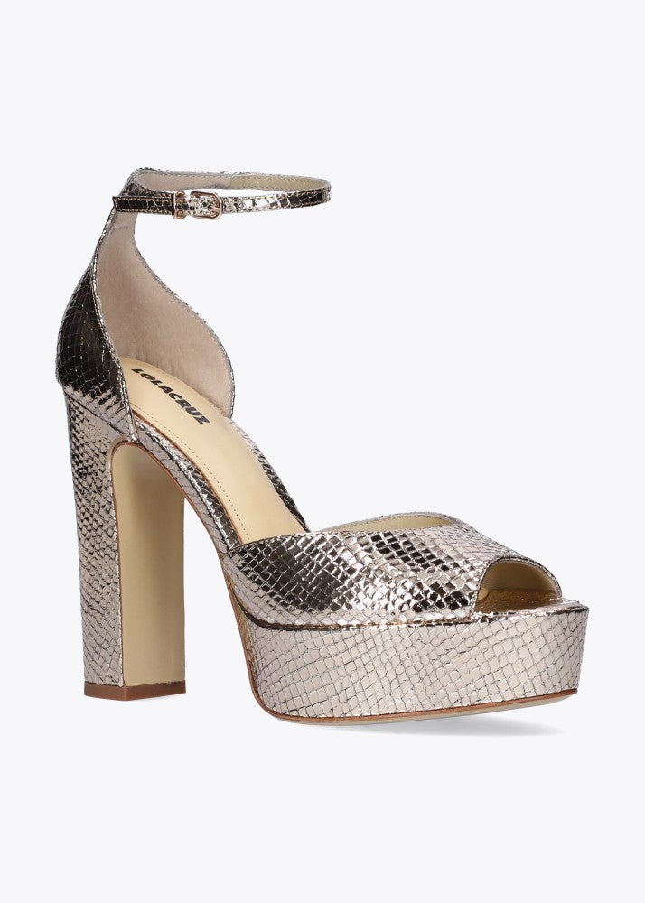 SANDALO PLATINO CON PLATEAU IN PELLE LAMINATA