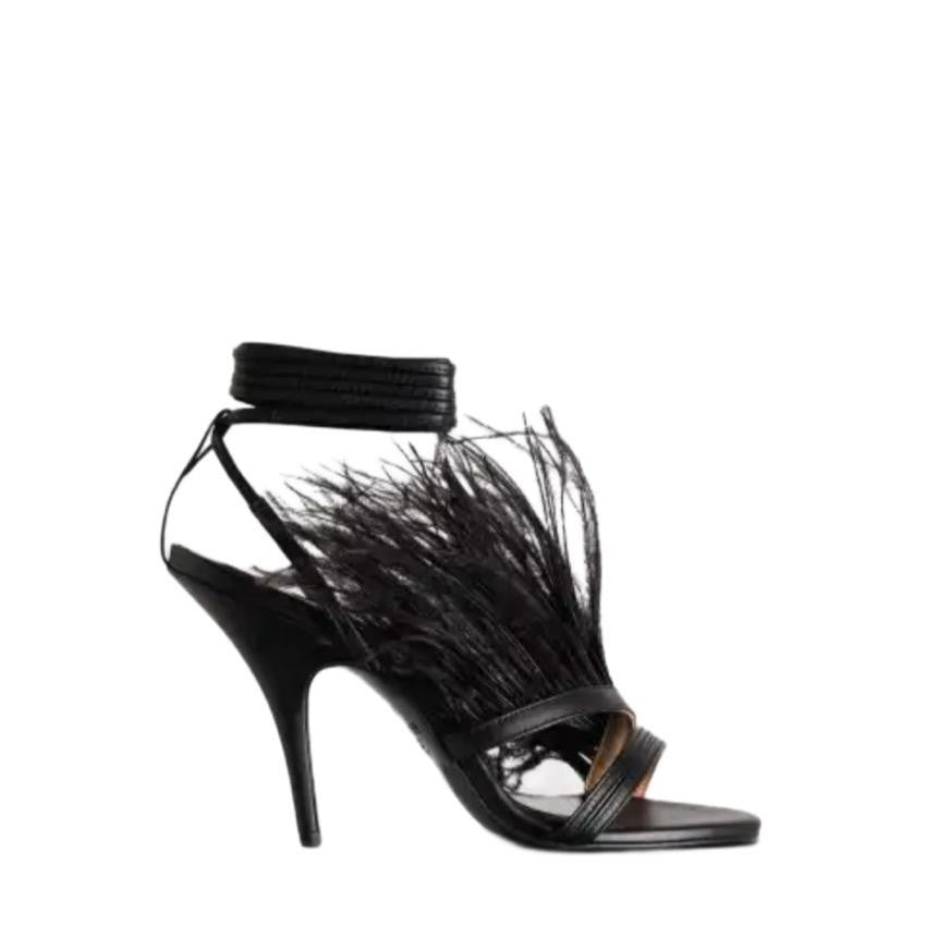 SANDALO NERO CON PIUME
