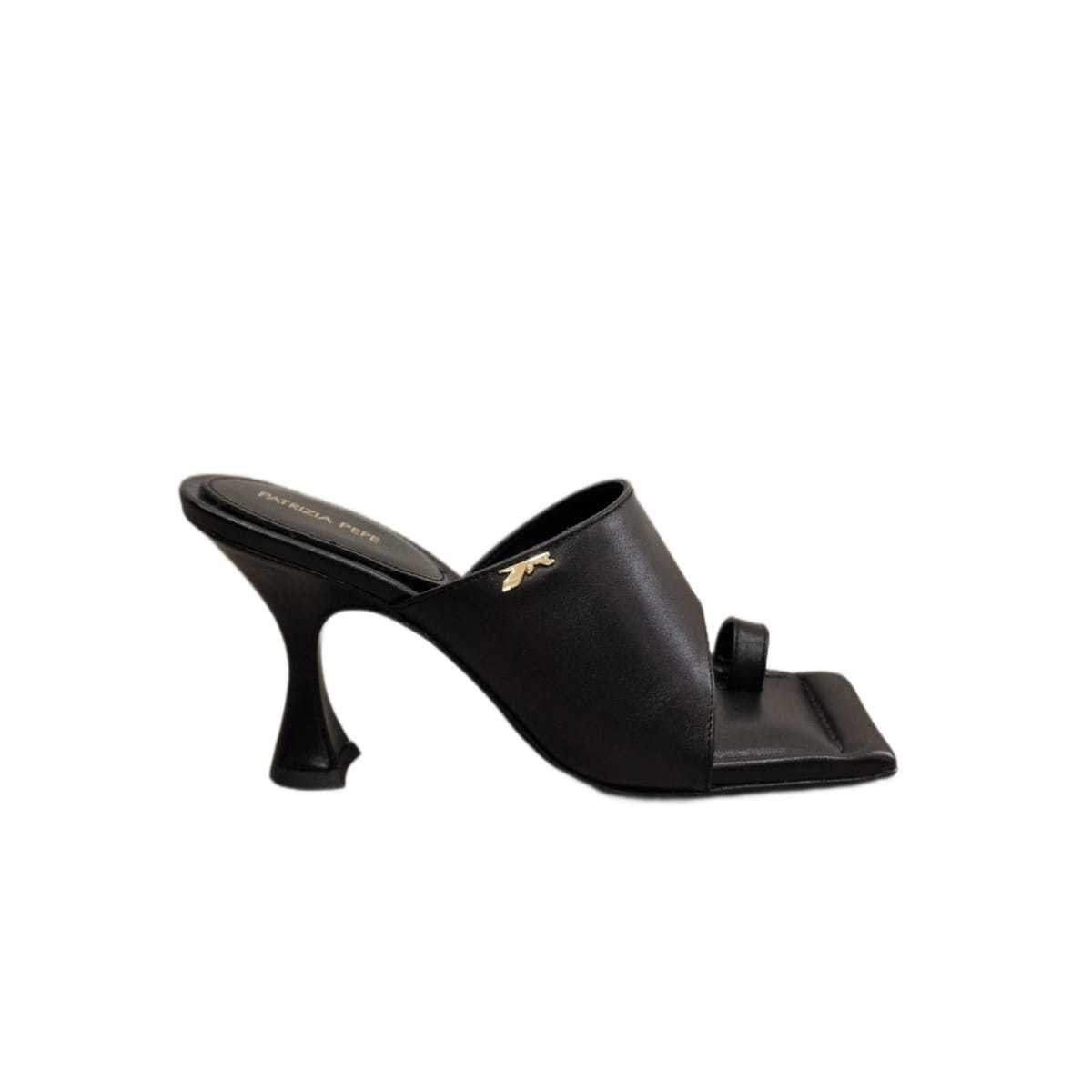 SANDALO IN PELLE NERO CON PUNTA QUADRATA