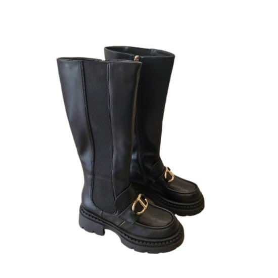STIVALE CON SUOLA CARRARMATO E LOGO DORATO