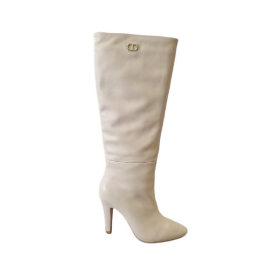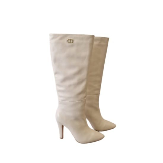 STIVALE IN PELLE PANNA CON LOGO DORATO