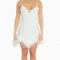 Abito corto con piume color burro Scollo a V Taglio con piume asimmetrico