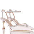 Questo décolleté Ninalilou in morbida nappa esprime un’eleganza luminosa e contemporanea. La silhouette affusolata valorizza il piede con naturale raffinatezza, mentre il profilo impreziosito da strass aggiunge un tocco delicato e femminile. Il nuovo tacco Amy completa il design con equilibrio e stile, rendendo questo modello ideale per cerimonie, occasioni speciali o per illuminare look eleganti con discreta sofisticatezza. Décolleté in morbida nappa con cinturino alla caviglia e applicazione di strass allo scollo. Scollo a punta. Suola in cuoio. Tacco 7,5 cm.