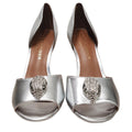decolletè in pelle laminata argento aperta in punta con logo centrale