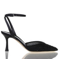 Eleganza senza tempo: questo sandalo Ninalilou unisce raffinatezza e luminosità con cristalli scintillanti e un design slanciato che celebra la femminilità in ogni passo. Décolleté in morbida nappa con punta in rete e applicazione di strass. Suola in cuoio. Tacco 7,5 cm.