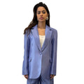 Giacca monopetto dal taglio dritto color azzurro cielo, effetto satinato.