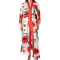 Kimono lungo in viscosa bianca fantasia papavero con bordi a contrasto