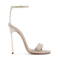 Casadei presenta il sandalo Blade in tessuto glitter platino, per un effetto sensazionale assicurato a ogni evento. Il cinturino alla caviglia assicura il fit, mentre il tacco Blade in acciaio temprato conferisce un look che slancia la figura. TACCO “BLADE” IN VERO ACCIAIO. 120 MM / 4.7 INCHES CON PLATEAU 10 MM / 0.4 INCHES. 100% MADE IN ITALY MATERIALE TESSUTO GLITTER ITALY