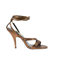SANDALO IN PELLE LAMINATA CON STRINGHE A CAVIGLIA
