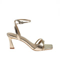 Sandali con tacco in pelle platino da donna Lola Cruz. Modello Celia 65 con punta squadrata , con cinturino glitter e tacco a stiletto di 6,5 cm.