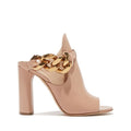 Raffinato e allo stesso tempo grintoso ,il sandalo Casadei Dafne. Realizzato in morbida pelle color nude, presenta una catena laterale in acciaio color oro. Tacco foderato in pelle alto 10 cm.