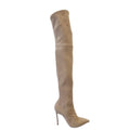 Realizzati in Italia, questi stivali sopra al ginocchio in camoscio stretch color camel avvolgono la gamba come una seconda pelle. Completando il look, l'accattivante e iconico tacco Blade, che quest'anno celebra il decimo anniversario e la punta affilata della forma donano un effetto slanciato ed ultrafemminile. TACCO "BLADE" IN VERO ACCIAIO. 10 cm/ 4.5 INCHES CON PLATEAU 10 MM / 0.4 INCHES. 100% MADE IN ITALY. MATERIALE CAMOSCIO ITALY