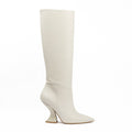 STIVALE IN PELLE PANNA CON TACCO SAGOMATO