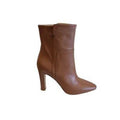 un classico lo stivaletto in morbidissima pelle in questo color cuoio, che si adatta a tutti i vostri outfit. tacco rivestito in pelle 10 cm.