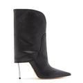 Per celebrare lo stile delle star più amate degli anni 2000, Cesare Casadei presenta lo stivaletto Superblade Titilla. In pelle nera, questo modello si distingue per la parte posteriore che scende a coprire il tacco come un mantello che lascia intravedere l’iconico tacco blade in acciaio. La parte anteriore rivela sinuosità di linee che evidenziano la punta affusolata, da fashion cool girl. BLADE HEEL IN STAINLESS STEEL. 100 MM / 3.9 INCHES.. 100% MADE IN ITALY MATERIALE PELLE DI VITELLO NAPPATO ITALY
